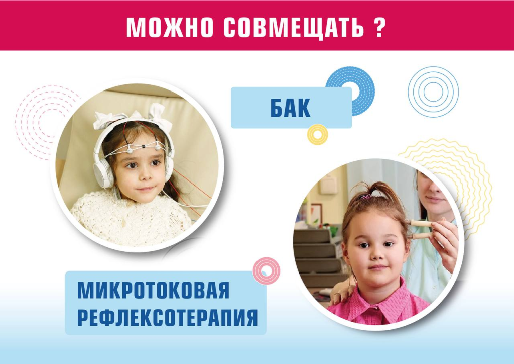 НАПРИМЕР: сочетают короткое «речевое» воздействие и успокаивающий режим «минор». Чтобы определить можно ли совмещать МТРТ+БАК в рамках одного курса детям предварительно проводится ЭЭГ.