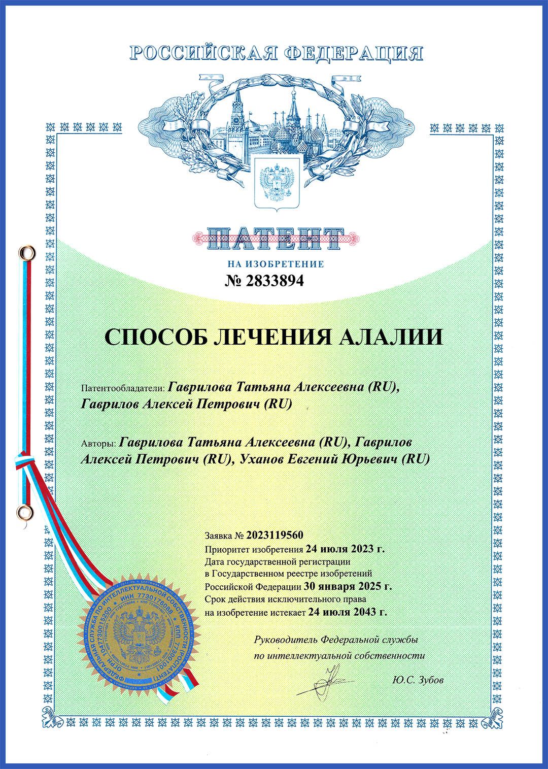 МЕТОД ЛЕЧЕНИЯ ЗАПАТЕНТОВАН