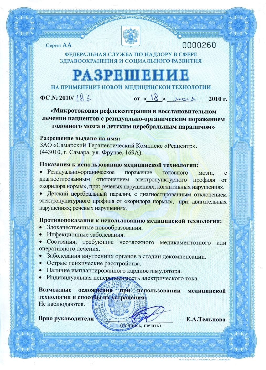 Патенты и разрешения ФЕДЕРАЛЬНОЙ СЕТИ КЛИНИК «РАЕЦЕНТР»